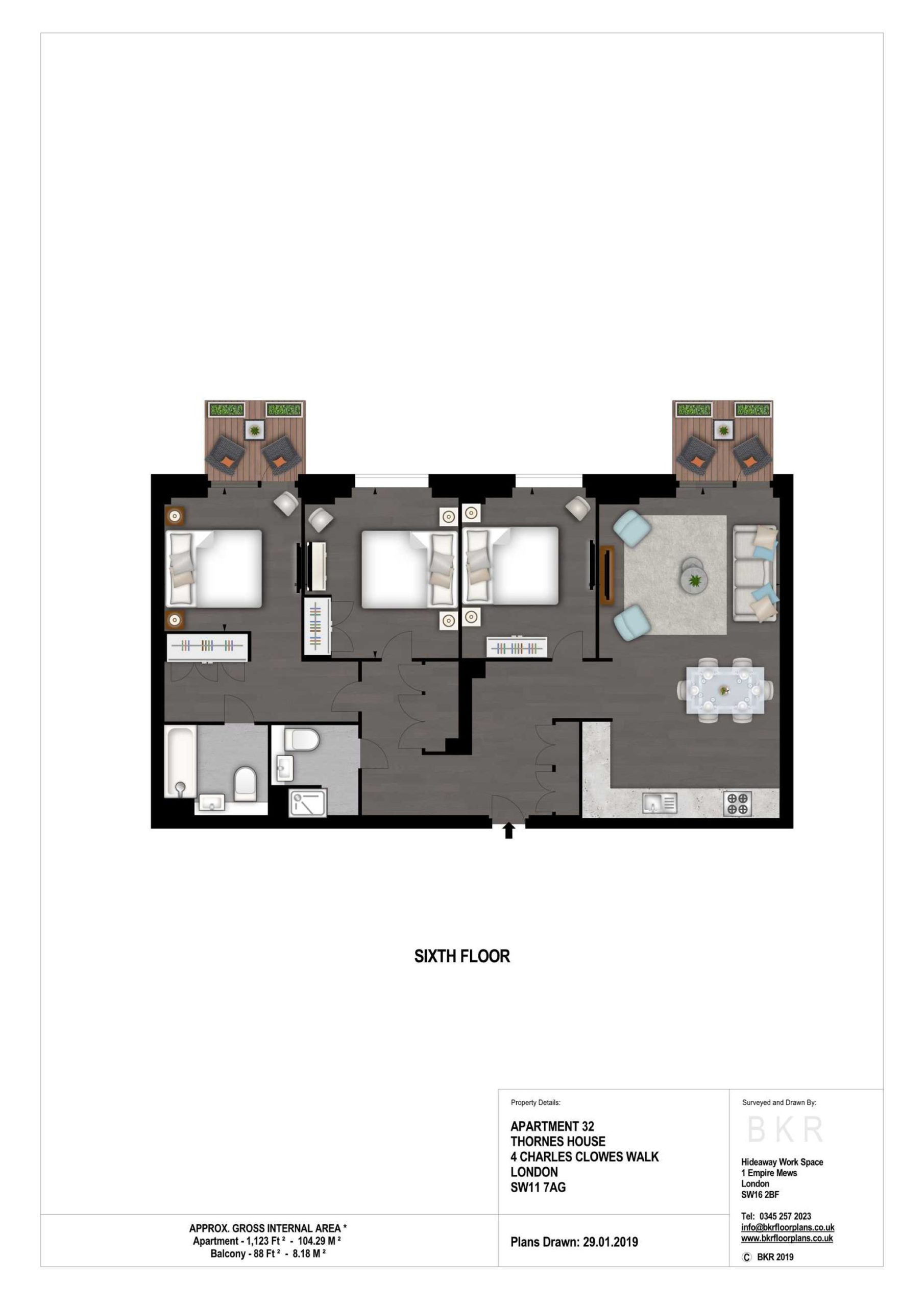 Thornes House, Nine Elms, SW11 — 6th Floor £1,500 per week | £6,500 PCM | 1,123 sq ft | 3 Bedrooms | 2 Bathrooms