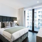 A striking 1,123 sq ft interior-designed three-bedroom, two-bathroom apartment on the 6th floor of Thornes House, part of The Residence Collection in Nine Elms, London’s iconic South Bank. The open-plan reception area is fitted with Samsung Smart TVs, Bose soundbars, and Alexa-controlled lighting, heating, and entertainment systems.