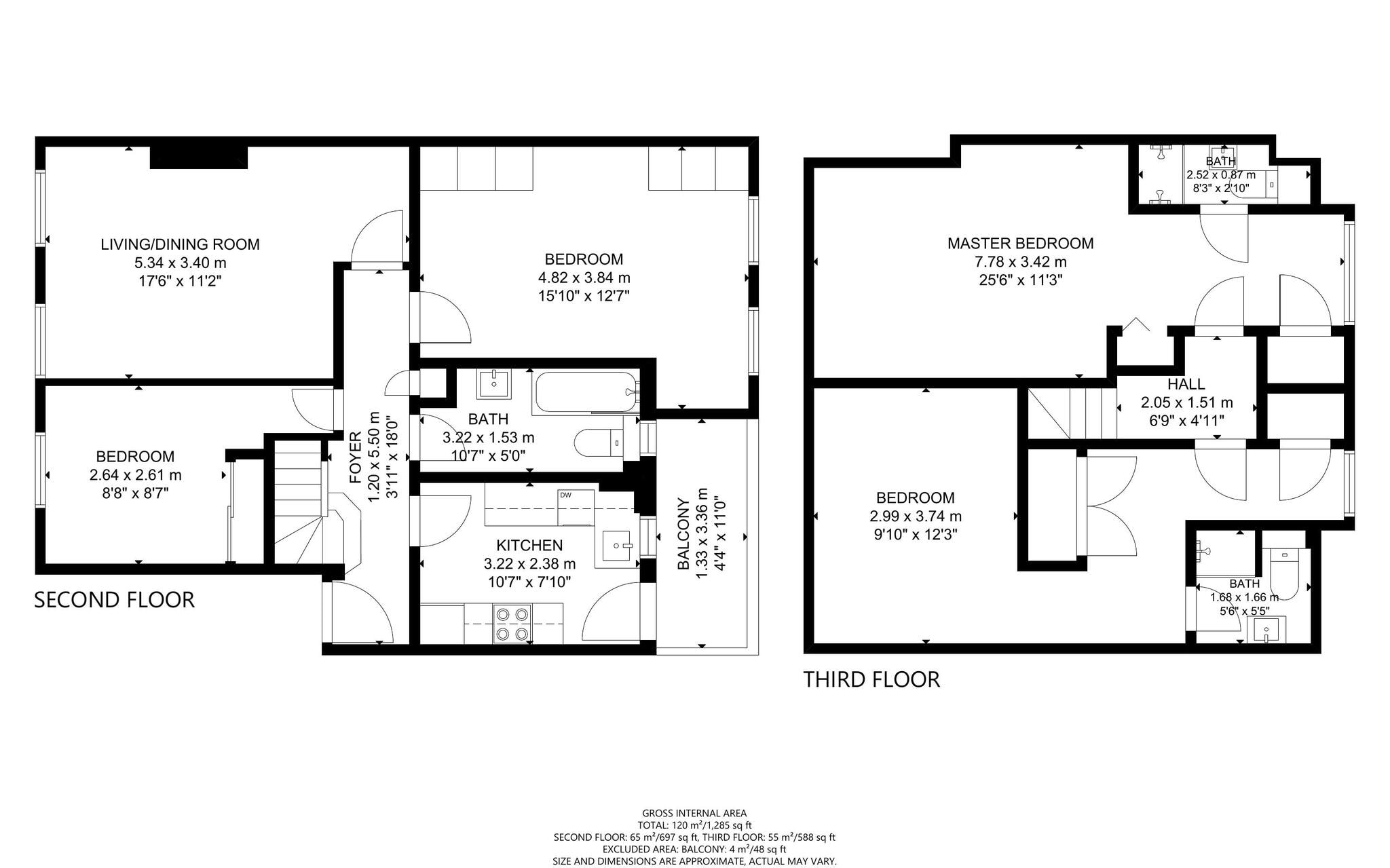 1.20m x 5.50m (3' 11" x 18' 1")