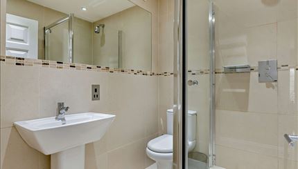 Set on the second floor, this 819 sq ft home features a double bedroom with en-suite bathroom, an additional guest shower room, a stylish reception room, and a fitted kitchen breakfast room. Wood flooring runs through the reception, hallway, and kitchen, combining elegance with practicality.
