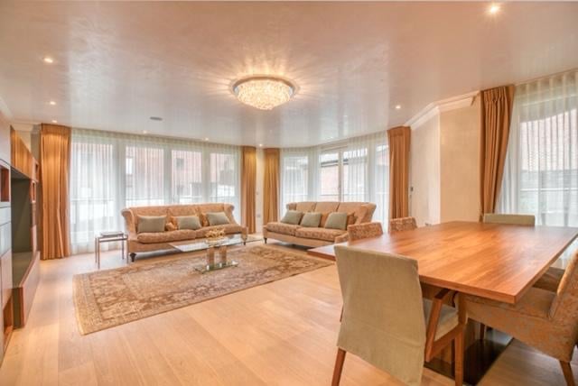 The expansive main living area is the true heart of this exceptional flat, offering a wonderfully bright and versatile space ideal for both entertaining and everyday living. Generously proportioned, it flows seamlessly onto a large private balcony, creating an effortless indoor-outdoor feel perfect for morning coffee or evening gatherings. The living space also benefits from direct access to the kitchen, enhancing both practicality and sociability.