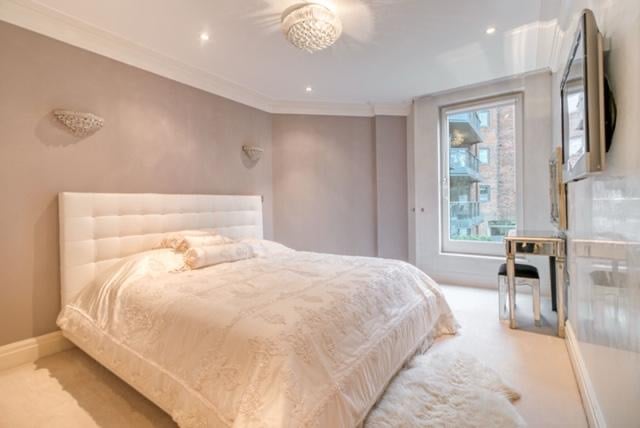 The master bedroom is a calm and luxurious retreat, generously sized to accommodate a large bed and additional furniture while maintaining a serene atmosphere. It is complemented by a spacious en-suite bathroom, offering a private, spa-like experience with excellent proportions that elevate everyday comfort.