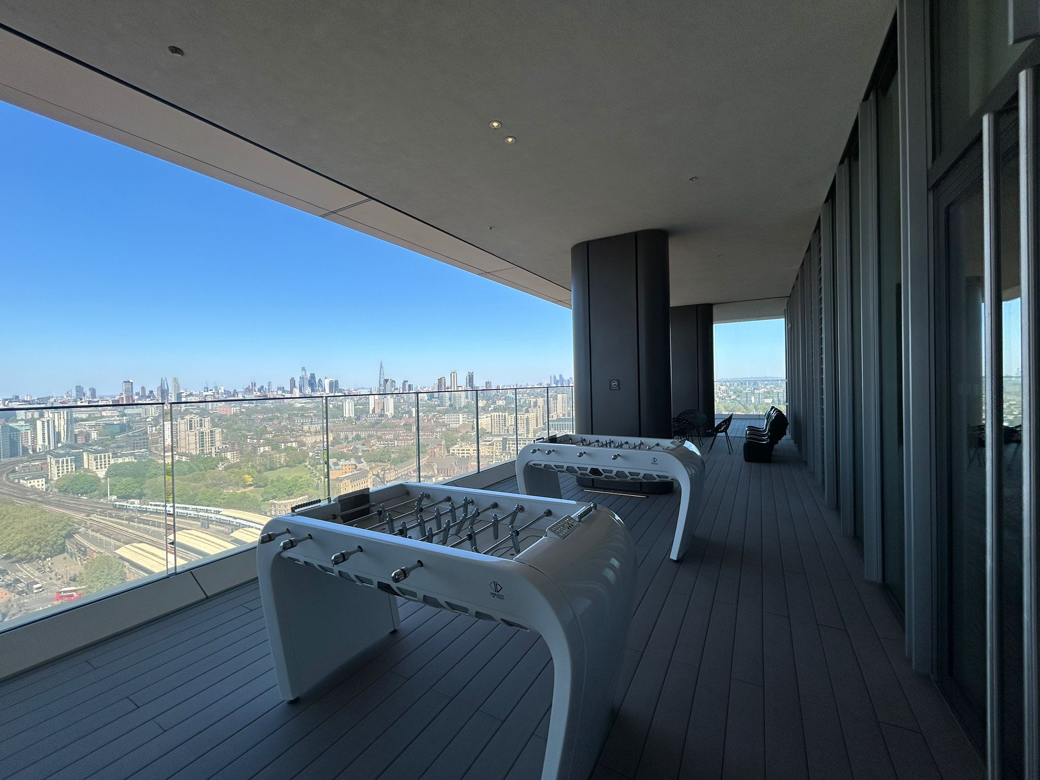 This elegant apartment combines thoughtful design with impeccable craftsmanship. Generous proportions and floor-to-ceiling windows create light-filled interiors with captivating views across the London skyline. The open-plan living and dining area flows effortlessly into a sleek kitchen equipped with premium integrated appliances. Two well-proportioned bedrooms include a sumptuous principal suite with en-suite bathroom and fitted wardrobes. High-end finishes throughout—underfloor heating, climate control, and designer fixtures—ensure every comfort has been considered.