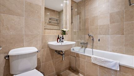 The master bedroom benefits from a stunning marble en-suite, and a second stylish bathroom offers additional convenience for guests or sharers.